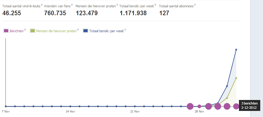 De pagina heeft inmiddels 102.000 likes. Het bereik is erg groot dus.
