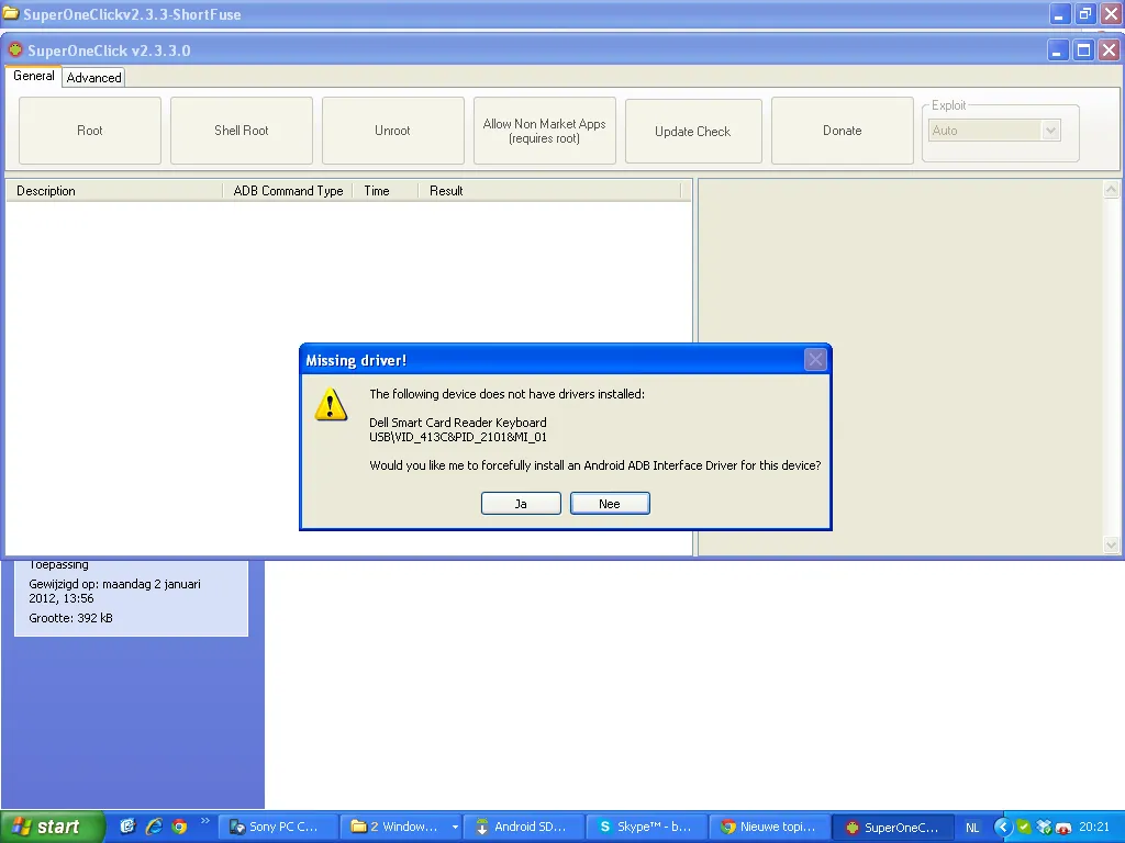 Als ik ja klik zegt hij iets van geen handtekening ofzo, klik ik op oke, dan begint hij iets te doen en komen er allerlij stappen, en dan staat er ook in Shell rooting #7 ofzo en daarbij blokkeerd het programma