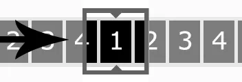 De pijl die op de afbeelding staat wilt zeggen als de gebruiker op draaien klik dan moeten al die cijfers naar rechts schuiven, tot het geluksrad stopt.