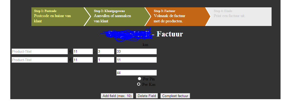Ik ben bezig met een offerte systeem en ik heb daarbij een duplicate method toegepast zodat ik elke keer een rij velden kan dupliceren, dit werkt allemaal perfect. Ook het berekenen van de waardes werkt tot dusdanige hoogte redelijk. Het probleem waar ik tegen aan hik is het volgende: