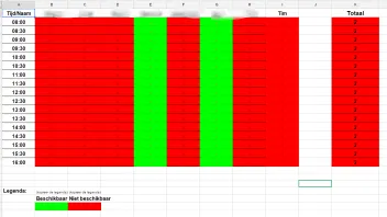Een voorbeeld van wat ik nu gebruik via Google Drive is bijgevoegd. Ik heb dan voor elke toekomstige dag een tab gemaakt. Maar ik dien telkens een nieuwe toe te voegen, dit is uiteraard tergend werk. Vandaar dat ik een oplossing zoek.