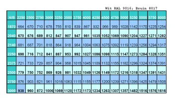Bijvoorbeeld 2500 breed x 2040 hoog kost €. 676,00