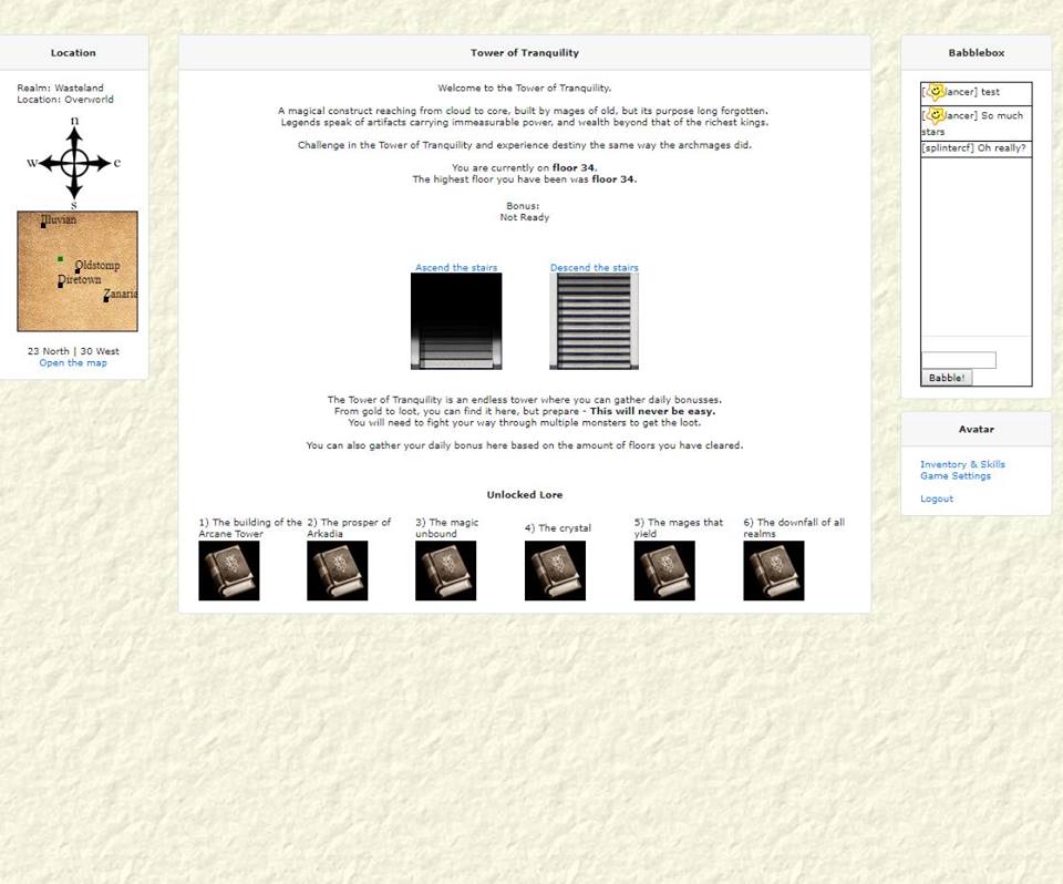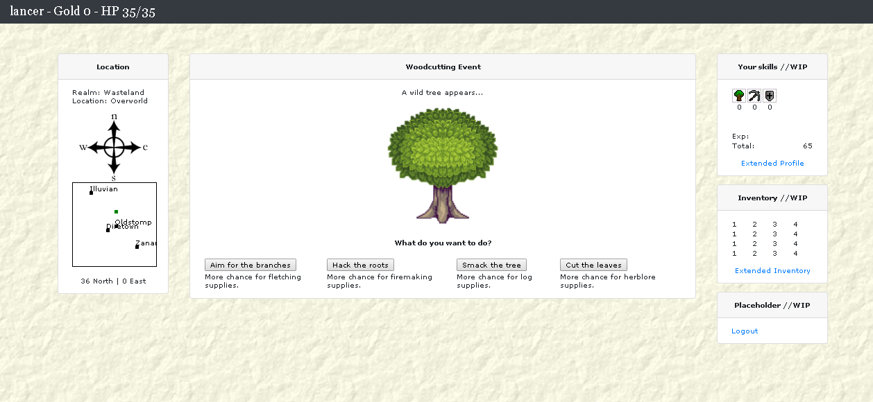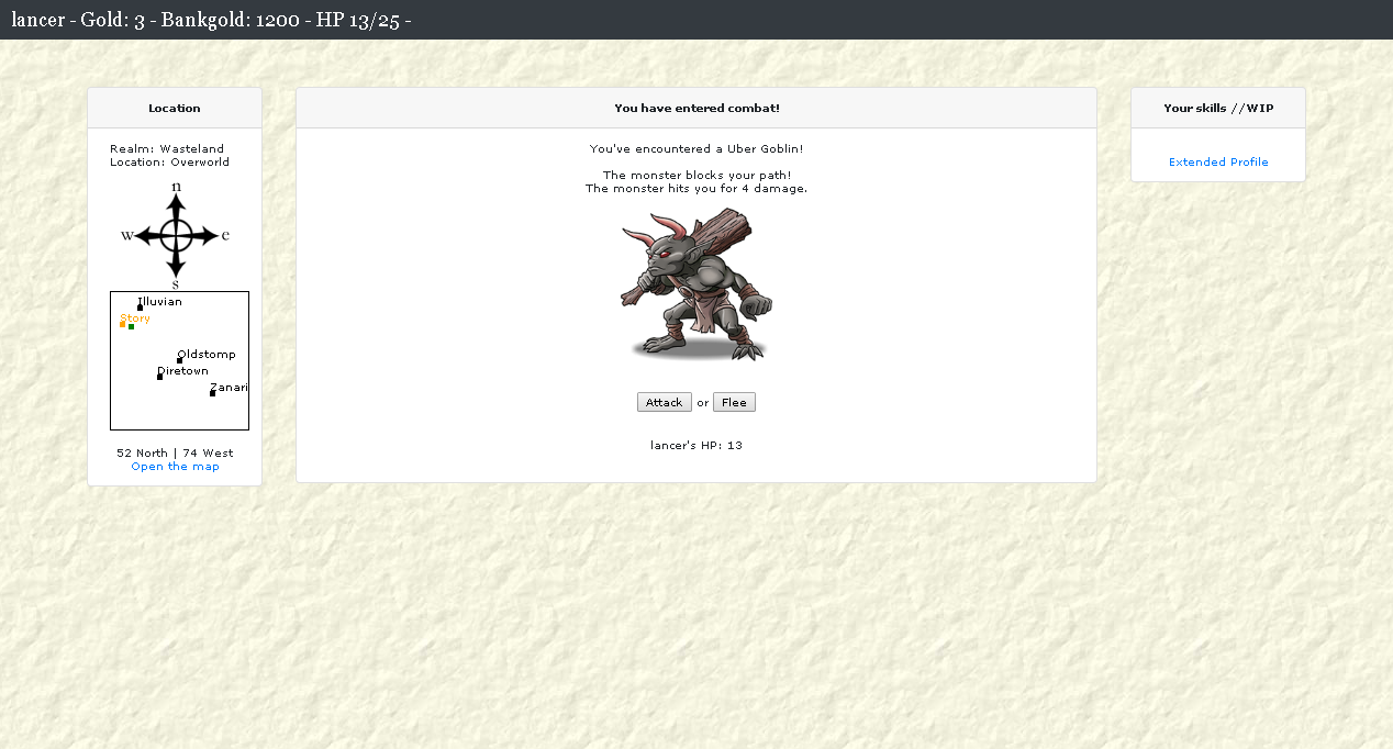Zo'n 10 a 15 jaar terug, zeg maar de hoogtij dagen van de Criminals websites, ging er een source code de ronde van iets compleet anders. Het was een soort High-fantasy RPG, waar men aan de hand van een image-grid van 3x3 door de wereld trok en op verkenning uit ging. De source code heb ik destijds hoogstwaarschijnlijk of van CriminalsPoint, Crime-Scripters of een van de destijds andere hulp-fora gehaald. Het had wat weg van Tibia, maar in Tibia loop je realtime rond, waar je bij deze game dus op een van de gridcellen moest klikken om van positie te veranderen.
