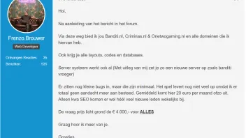 Bericht van 2020, ik heb alles van Frenzo overgenomen. Zal ook zeker nog ergens de factuur hebben liggen + de verkoopovereenkomst (Met banditi.nl, Criminas.nl, Criminas.be, OneTwoGaming.nl en OneTwoGaming.be)