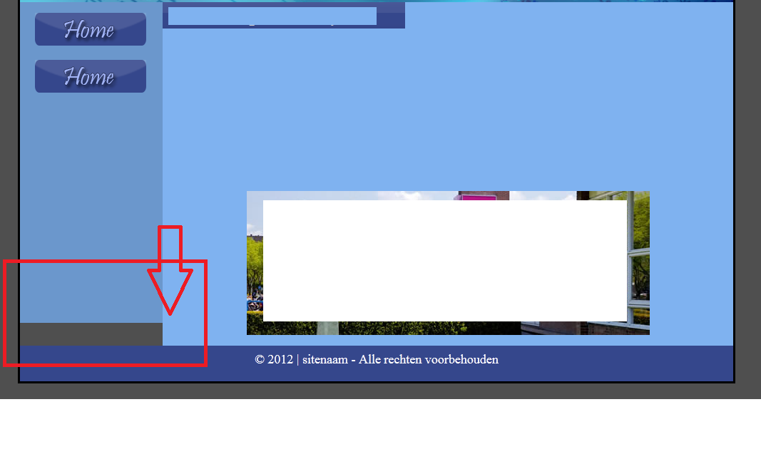 Toon Meer.content_houder { width:1000px; } .menu { margin:0px; float:left; width:200px; min-height:450px; background-color:#6b97cc; } .menu_button { padding-left:21px; padding-top:15px; } .content { float:left; width:800px; min-height:450px; background-color:#7FB2F0; } .content_content { padding-left:10px; padding-right:10px; padding-bottom:10px; } .content_title_bg { margin-left:-10px; width:340px; height:37px; background:url(images/content_title_bg.png); } .content_title_text { padding-left:10px; font-family:"Palatino Linotype", "Book Antiqua", Palatino, serif; color:#d4d2d2; font-weight:bold; font-size:24px; }Kan iemand me helpen?