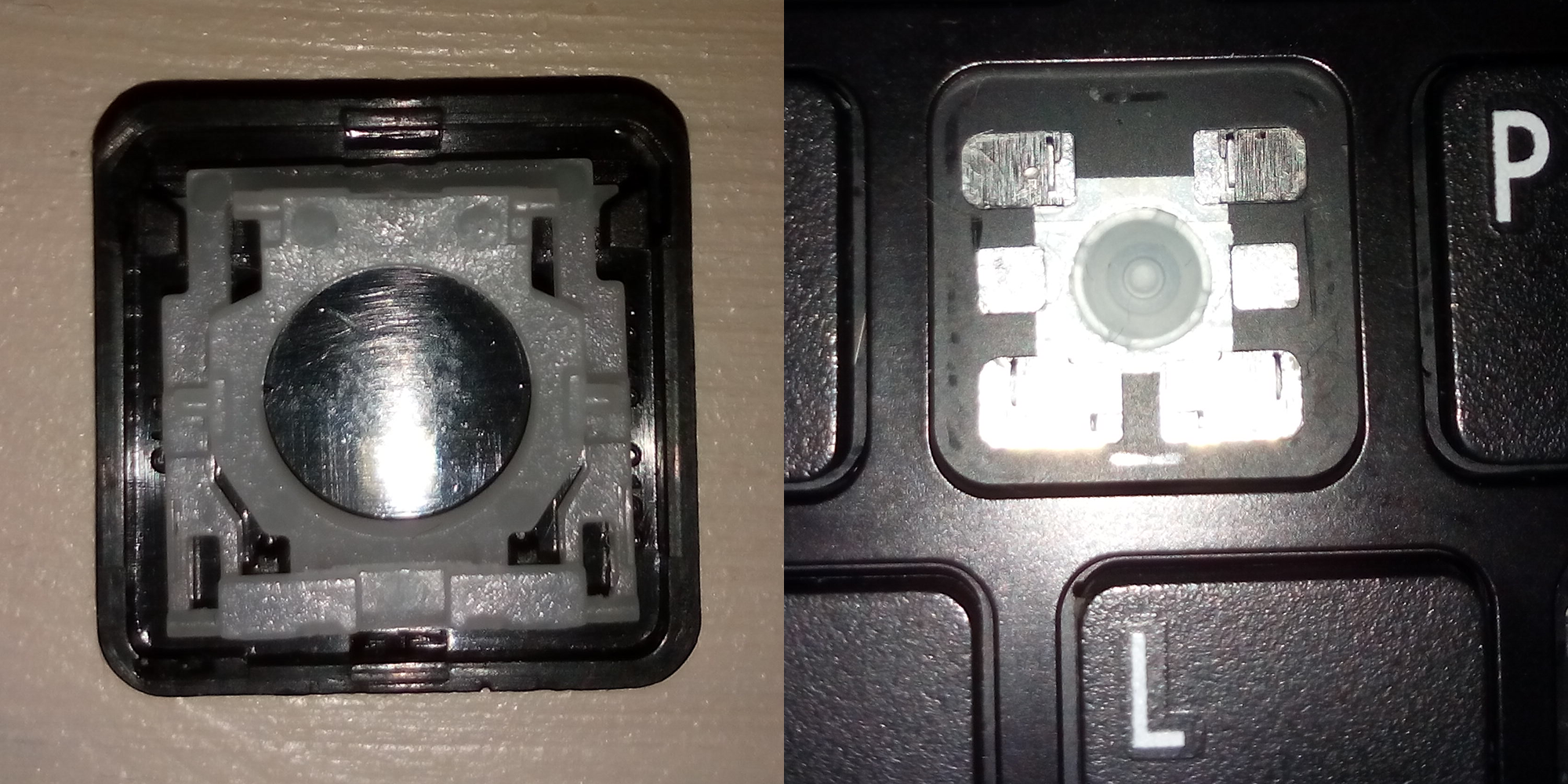 Op mijn Acer Aspire E5-572G laptop had ik al een tijdje dat de O toets lastig in te drukken was, dus besloot ik vandaag om hem eens los te halen om de boel eens schoon te blazen. Nu krijg ik de toets er echter niet terug op. Ik heb de toets heel erg voorzichtig losgemaakt, maar toch ben ik bang dat ik hem gesloopt heb, het ging ook niet erg makkelijk. Er zijn nergens tekens van gebroken plastic.
