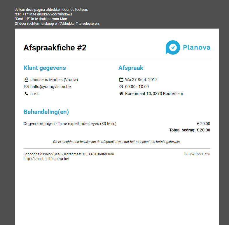 De klanten vinden hun weg om een afspraak in te plannen via een aparte website: https://standaard.planova.be/