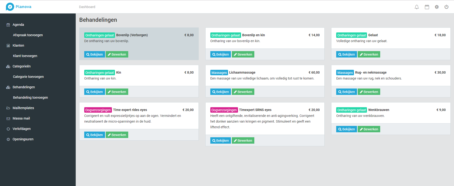 - Categorieën aanmaken om behandelingen in onder te brengen
