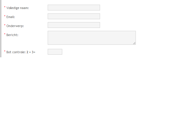 Toon Meer#searchbar { width:250px; float:left; padding-left:35px; background-image: url(images/searchicon.jpg); background-repeat: no-repeat; background-position: 3px 9px; padding-top: 5px; } #searchbar #keyword { width:150px; display: block; float: left; height: 20px; border: 1px solid #969696; padding: 2px; margin-right: 5px; font-size: 14px; } #searchbar form {padding:3px;} #searchcontact form {padding:-8px;}en de code van het contact formuleer is: