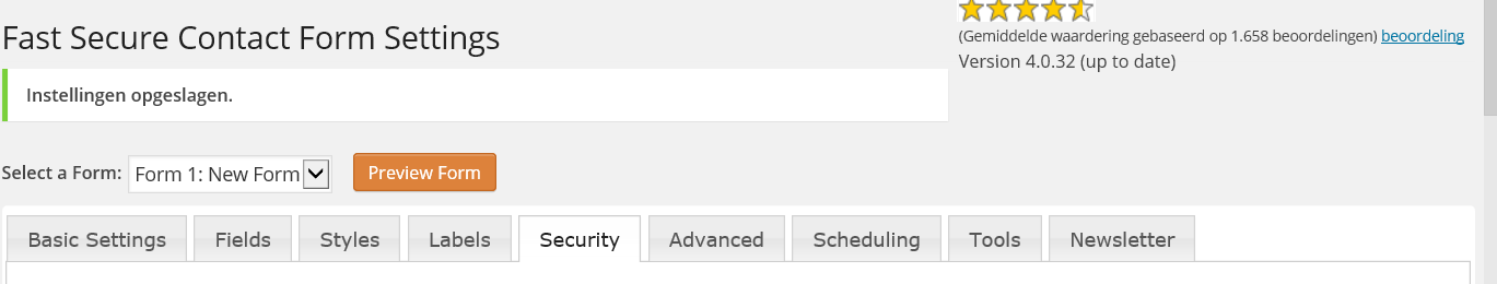Ik heb de contact formulier van - Fast Secure Contact Form Settings.