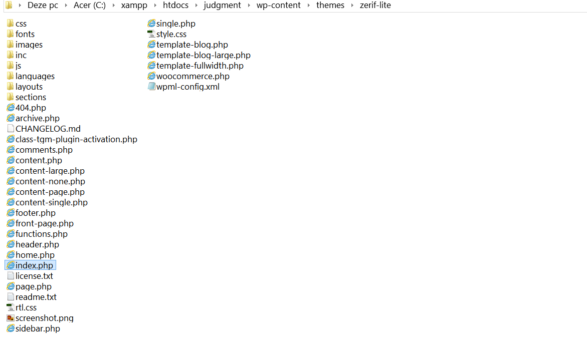 heb via een andere wordpress zelfde thema gepakt, en die index maar gekopierd, omdat het daar aan moet liggen.Check mn site http://www.nojudgment.nl