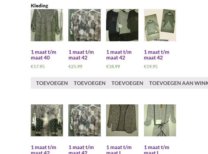Als je op de pagina kleding drukt, komt er groot in beeld in winkelwagen.