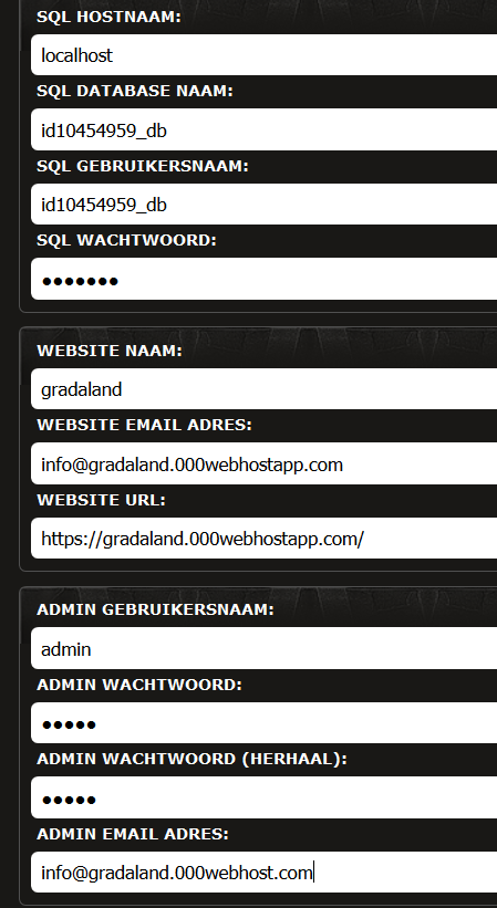 in gradaland.000webhostapp.com/instal/ voorheen install heb ik het zelfde gedaan als config.inc